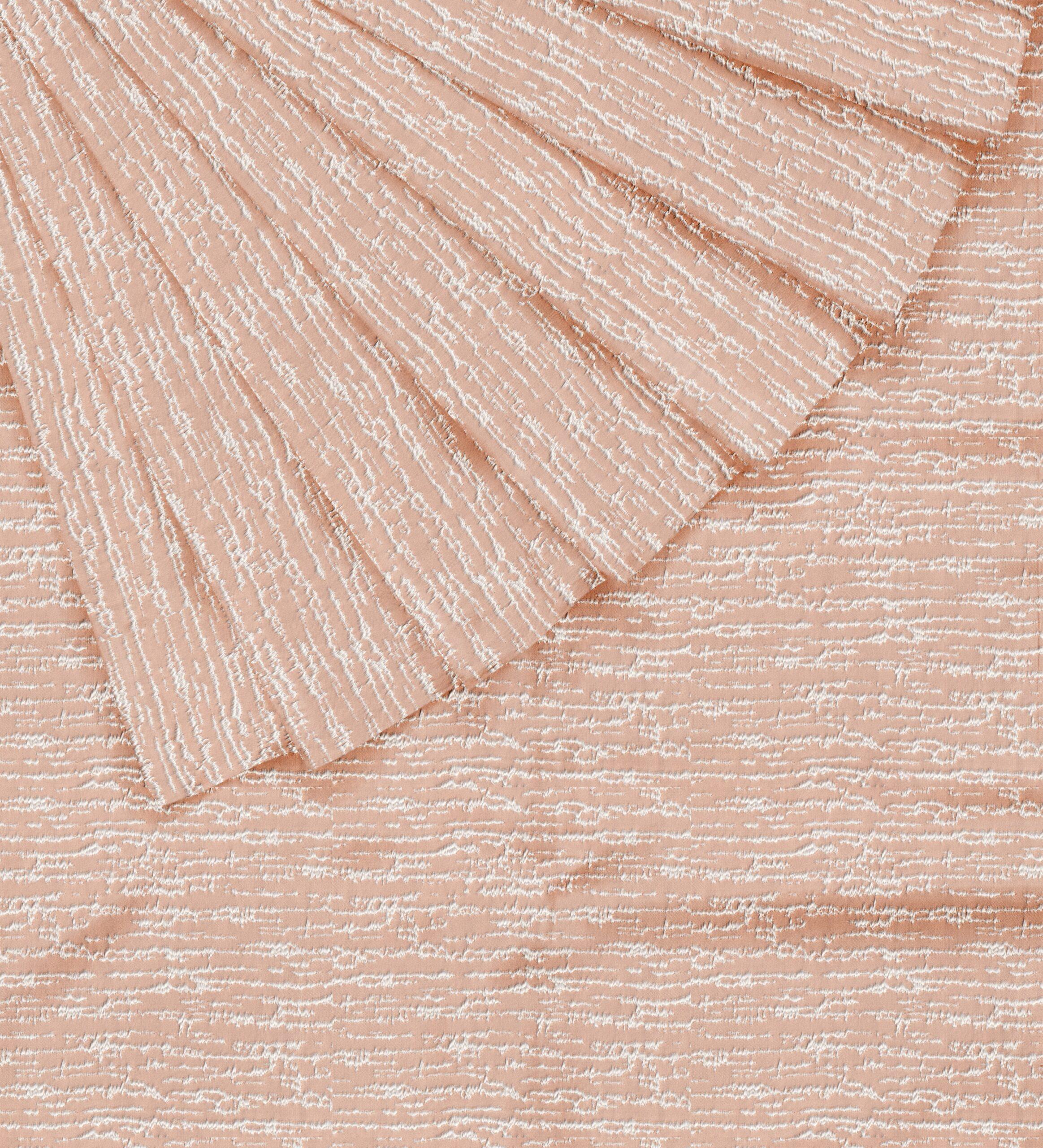 This fabric features a subtle textured vertical pattern that creates a soft, flowing visual effect, adding depth and elegance to any space. The raised threads form an organic, cascading design that resembles gentle rainfall or natural bark textures, giving the fabric a modern yet timeless appeal.